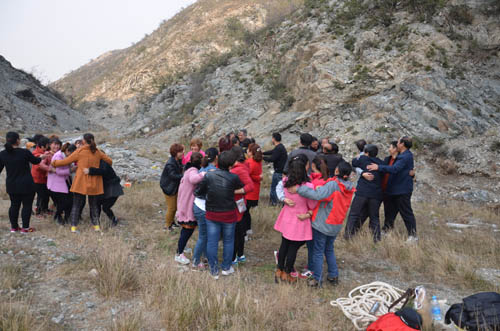 到達(dá)目的地,負(fù)責(zé)人講解了活動細(xì)則及注意事項(xiàng)后,大家就開始爬山,年輕的員工早已摩拳擦掌,躍躍欲試。在旗手的帶領(lǐng)下,大家爭先恐后的向山頂進(jìn)發(fā)。