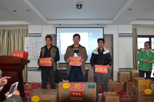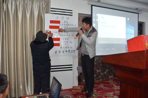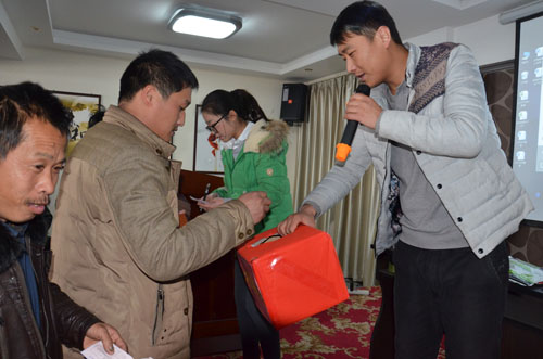 會議中由張老師為果農(nóng)朋友講解果樹種植管理技術(shù),果農(nóng)朋友全都被張老師豐富的果樹管理技術(shù)所吸引,還有宋老師的套餐分析,讓果農(nóng)紛紛稱贊其農(nóng)藥知識的專業(yè)性,直到指導(dǎo)老師分享完果農(nóng)們還意猶未盡。隨后,訂貨開始,2015年在臨猗建立的套餐示范園中,果農(nóng)們普遍反映效果較好,再加上直營部******的技術(shù)服務(wù),果農(nóng)們沒有過多猶豫,紛紛掏錢預(yù)定套餐,并獲得抽獎資格。