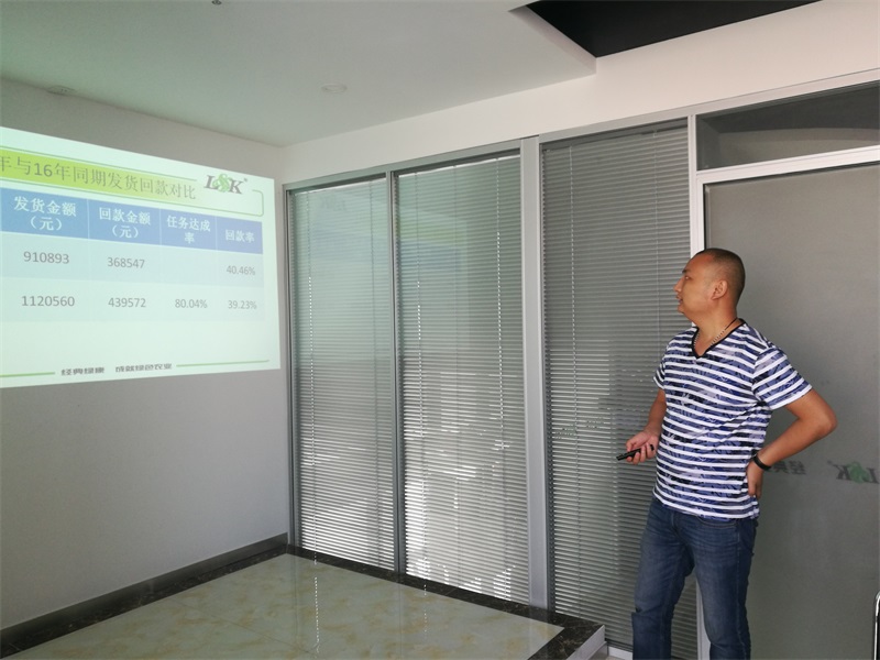 會(huì)議第二天,周總做2017年銷售工作總結(jié),首先對(duì)比了各個(gè)市場(chǎng)2016年與2017年同期發(fā)貨情況及公司大品的漲跌情況,其次總結(jié)了上半年銷售中存在的問題及需要改進(jìn)的具體方案。之后安排了下半年的發(fā)貨及回款任務(wù),*** 后總結(jié)了銷售隊(duì)伍中存在的問題及下一步改進(jìn)的辦法。并特別指出今年希望各位業(yè)務(wù)經(jīng)理按照公司要求的時(shí)間內(nèi)完成公司制定的任務(wù),以便公司全力以赴舉辦年底的植保會(huì)。