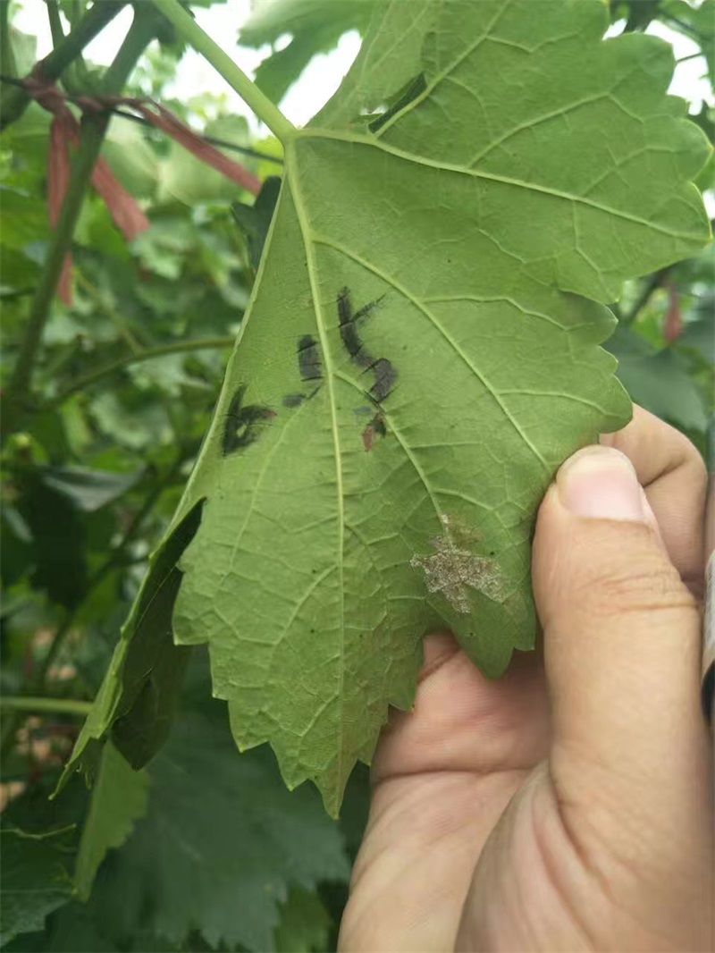 眾所周知,陜西省渭南市葡萄種植面積在全國傲居前線,作為葡萄的重要病害——霜霉病一直是困擾種植戶的頭等病害,常規(guī)霜霉病產(chǎn)品主要以預(yù)防為主,******效果不是很明顯,尤其是霜霉病發(fā)病中后期,常規(guī)******劑基本沒效果,針對這種情況,綠康實業(yè)有限公司陜西片區(qū)業(yè)務(wù)經(jīng)理譚戰(zhàn)于6月13日,帶著公司新產(chǎn)品“福霜”深入葡萄種植戶樊大姐家的地里,挑選出一片霜霉病發(fā)病較重的地塊,展開了福霜針對霜霉病的效果驗證。