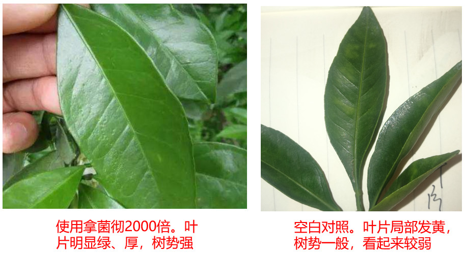 綜合以上實(shí)踐應(yīng)用和試驗(yàn)得出結(jié)論:全剩余期使用2-3次凱露森葉片、果面不會受到脂點(diǎn)黃斑病和砂皮病的侵染,***終達(dá)到葉片濃綠、果面靚麗的效果,而且能夠提高樹勢。