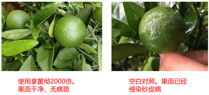 然而在柑橘種植管理過程中,砂皮?。?span style="color:#000000;background-color:transparent;">桂林地區(qū)俗稱“鐵砂病”)不斷困擾著沙糖桔的種植者,成為阻礙種好柑橘的頭號病害。運(yùn)城綠康生產(chǎn)的凱露森(原名拿菌徹)在桂林市防治脂點(diǎn)黃斑病、砂皮病效果突出,已經(jīng)得到廣大用戶的認(rèn)可,現(xiàn)分享給大家:
