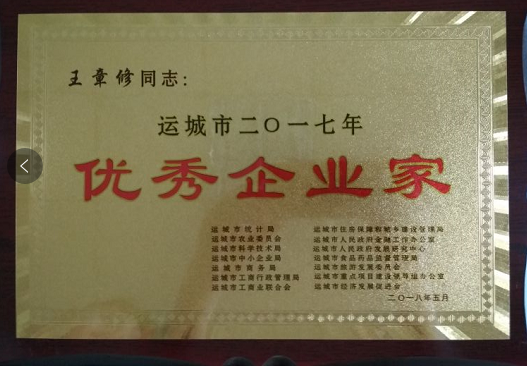 日前,由運城市政府、市農(nóng)業(yè)委員會聯(lián)合市工商局、商務(wù)局、食品藥品監(jiān)督管理局等十四個行政管理部門共同為全市優(yōu) 秀企業(yè)及企業(yè)家授予表彰,我公司憑借多年來積累的可靠的產(chǎn)品質(zhì)量和良好的社會信譽度榜上有名,公司被評為“運城市二零一七年度誠 信企業(yè)”,公司領(lǐng)航人王章修董事長被評為“運城市二零一七年度優(yōu) 秀企業(yè)家”。在這個良好發(fā)展的平臺上,公司已制定出新發(fā)展的策略,同時,也將會有更強的競爭力和發(fā)展力,望全體員工團結(jié)一致、齊心協(xié)力,與企業(yè)共同進步、共同發(fā)展,書寫新畫卷。