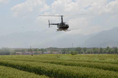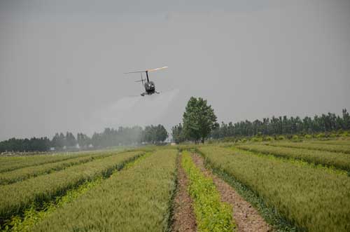 5月份是小麥形成產(chǎn)量的關(guān)鍵時(shí)期,也是病蟲害防治的關(guān)鍵時(shí)期。5月8日起,山西運(yùn)城綠康實(shí)業(yè)有限公司利用專業(yè)化統(tǒng)防統(tǒng)治手段,在山西省聞喜、永濟(jì)、翼城、洪洞等地依次進(jìn)行小麥蚜蟲飛防實(shí)驗(yàn),這次飛防地點(diǎn)的選定主要是農(nóng)田面積比較集中,且周圍村莊相對稀疏,沒有過高建筑物的地方,非常適合飛機(jī)噴藥的田塊進(jìn)行。